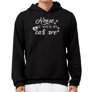 Home Is Where My Cats Are Hoodie – Cat Lover Hooded Sweatshirt – Funny Pet Unisex Hoodie